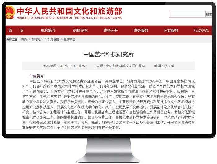 打开文化和旅游部官网 > 直属单位 > 中国艺术科技研究所
